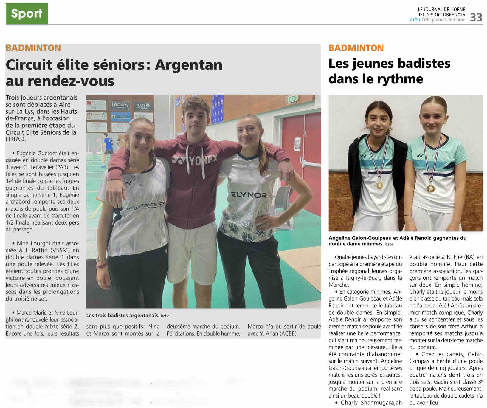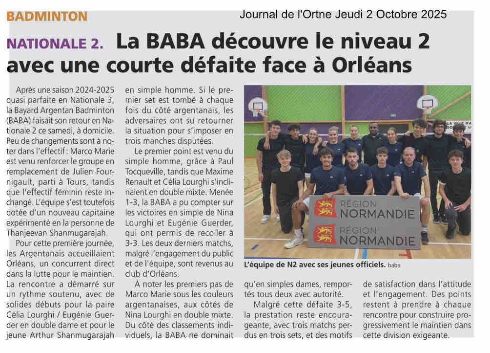 LIEN : https://www.ouest-france.fr/sport/badminton/badminton-ce-sera-une-tres-belle-experience-la-bayard-argentan-retrouve-la-n2-a255f976-95ec-11f0-9689-8940a74acfc4
