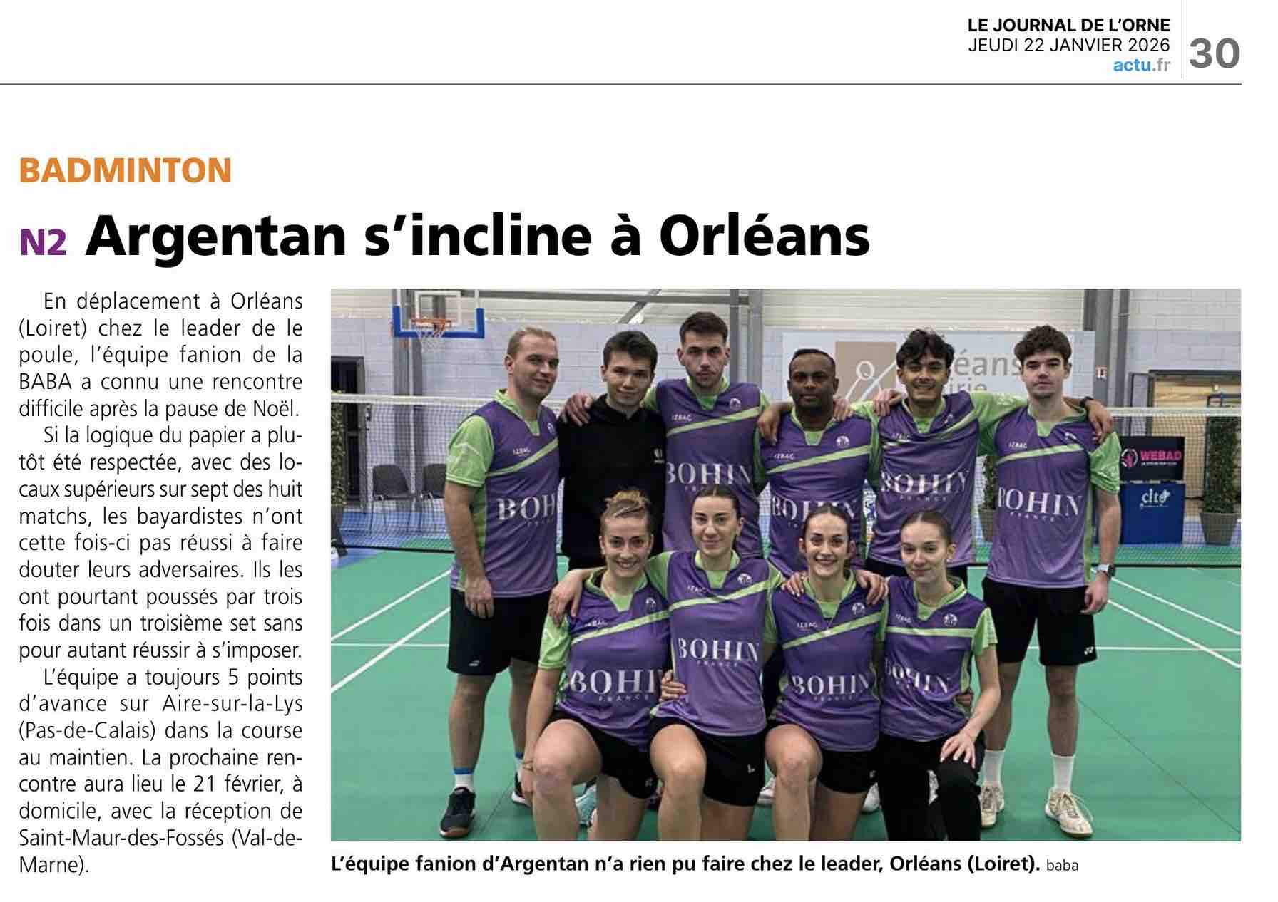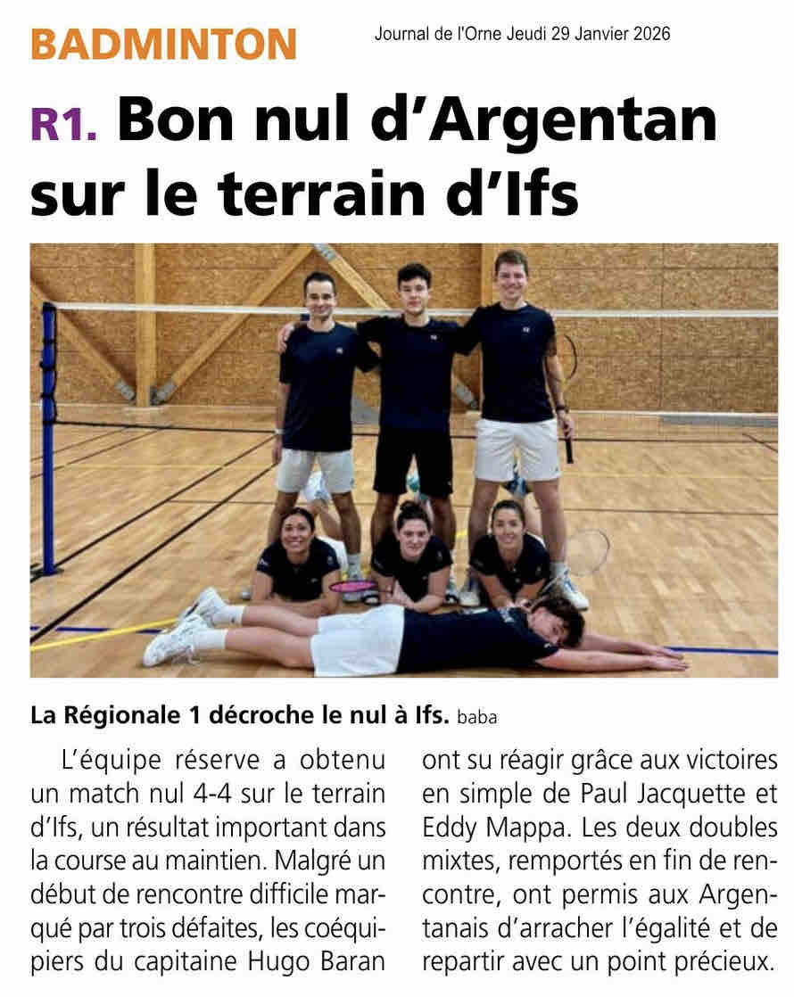 La Bayard Argentan badminton était engagée sur de multiples terrains nationaux samedi 1er et dimanche novembre 2025. Hugo Baran s’est notamment imposée dans l’Orne en double mixte.