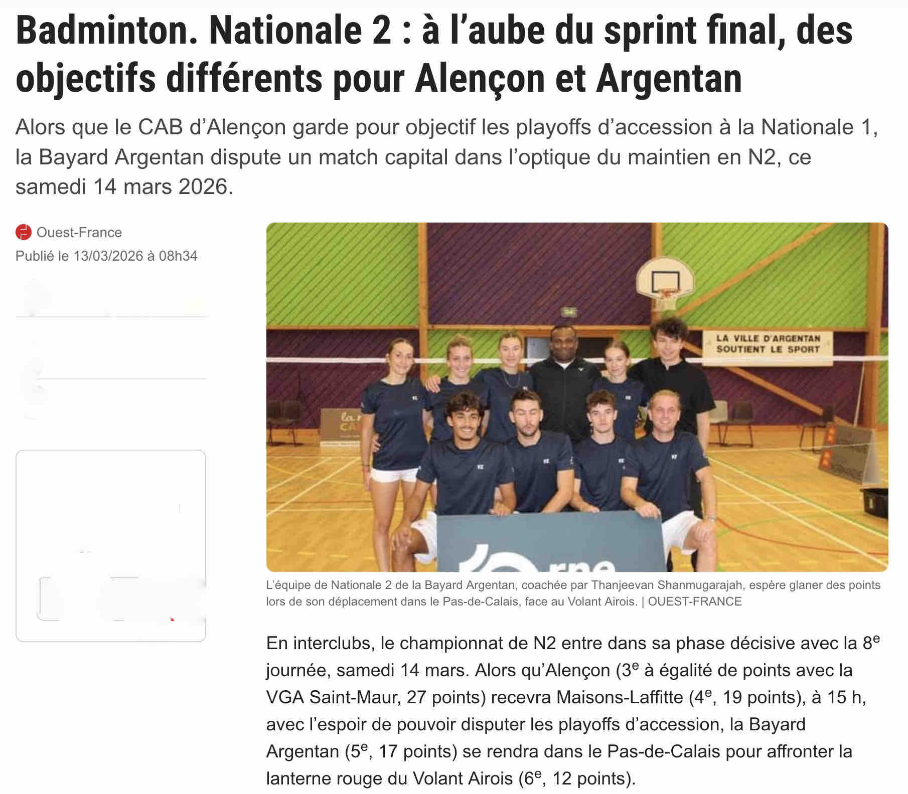 Badminton. Des résultats probants partout en France pour la Bayard Argentan