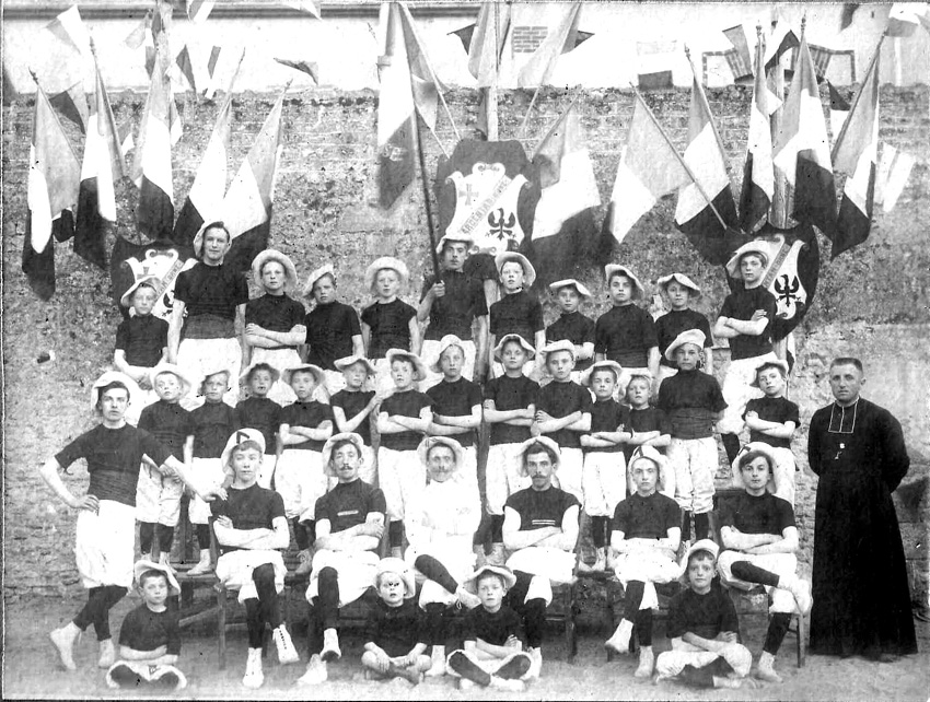 C’est alors que le PATRONAGE SAINT LOUIS DE GONZAGUE fut créé, ayant pour but principal la formation morale et physique de la Jeunesse. Ses principales activités étaient alors la lecture, les jeux de sociétés, le tennis de table, le billard, et la gymnastique, l’organisation de conférences, de spectacles, de théâtre. Et dès 1905 une grande manifestation sportive et musicale eu lieu sur le champ de foire.